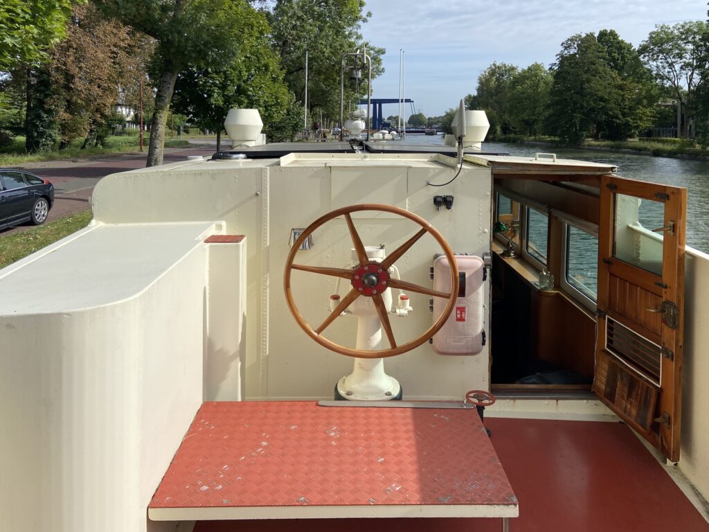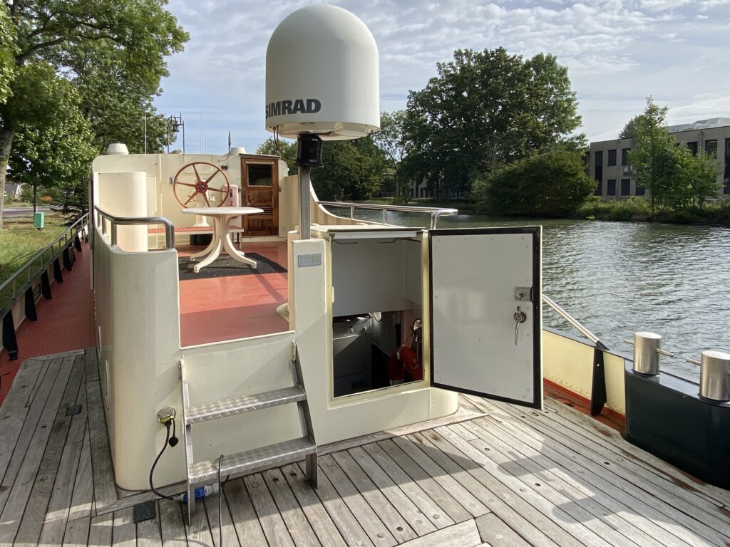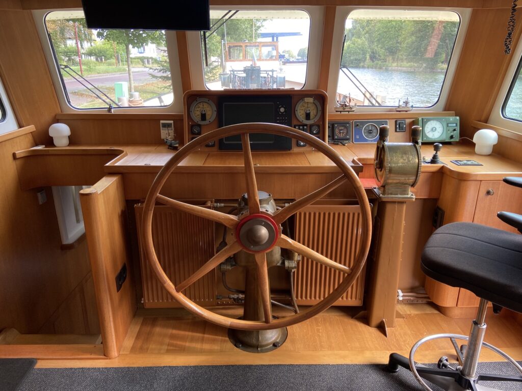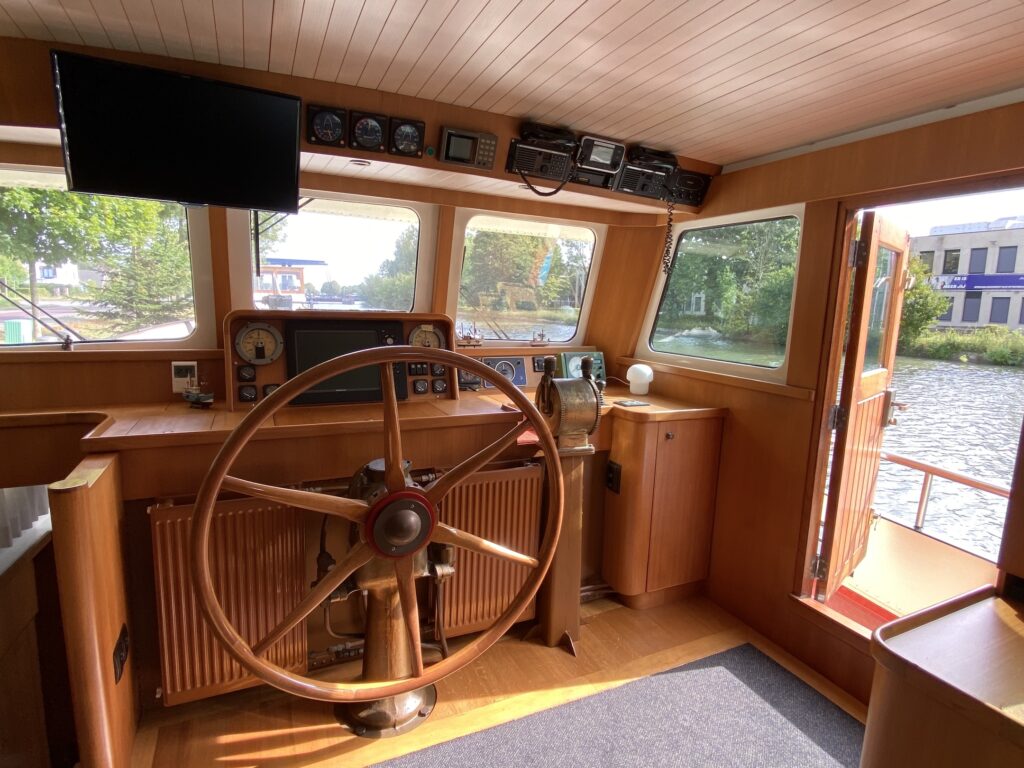 Achter de stuurhut bevindt zich een terras met afmetingen van circa 5 x 2,50 meter. Het schip wordt binnen bestuurd. Er is ook buiten een stuurwiel en met een technische aanpassing is besturing buiten mogelijk. De stuurhut is op indrukwekkende wijze ingericht met de nodige apparatuur.