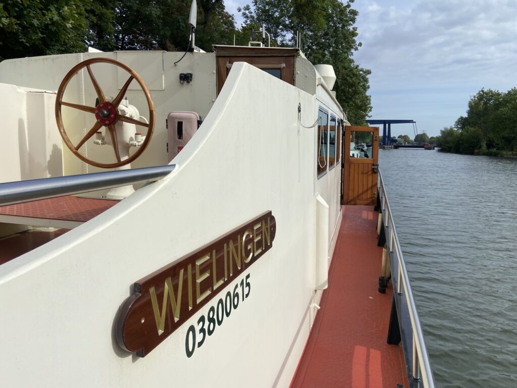 Op een vaste ligplaats op een fraaie locatie aan de Utrechtsestraatweg in Nieuwegein (het oude Jutphaas), schuin tegenover de monumentale Nicolaaskerk, ligt dit fraaie schip met de naam Wielingen.